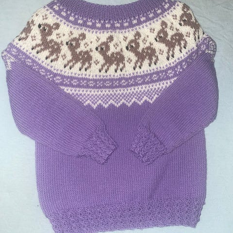 Ny hjemmestrikket Bambi genser,lyng farge,1-2 år,100% tm ull