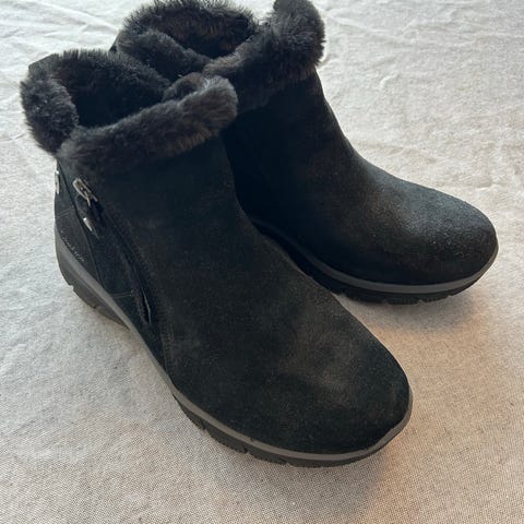 De lyse er minimalt brukt, selges for 700kr. De svarte er pent og fint brukt- selges for 500kr. Utrolig myke og behagelige, selges for min mor som har problemer med føttene. Så ingenting i veien med skoene .