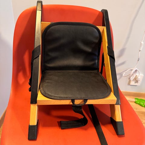 Stokke Barnestol i tre med setepute og sikkerhetssele