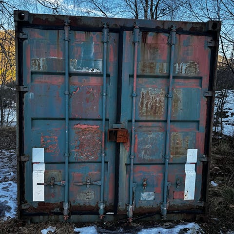 Rød container egnet for avfallshåndtering. Designet for oppsamling og transport av ulike typer avfall. Robust konstruksjon for industriell bruk.
