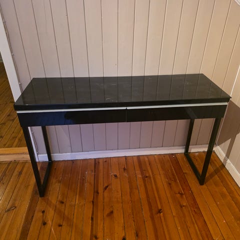 Kontorstolen er som på bildene ganske sliten og gis bort. Armlenet på venstre side mangler en skrue og er derfor tapet. Fungerer ellers som den skal.