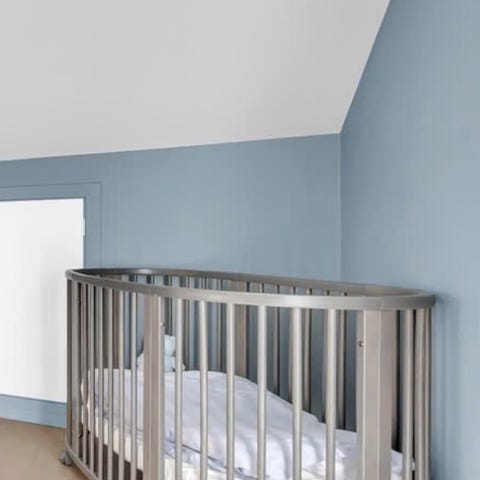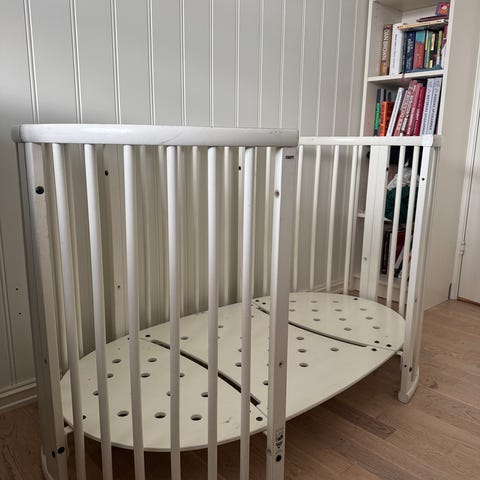 Stokke Sprinkelseng i hvit farge. Designet for barn med rundede kanter og spiler som gir god lufting og sikkerhet. Laget av solid materiale egnet for barnemøbler.