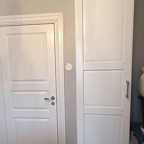 I god stand. Svarte kurver/skuffer følger med, samt hvit dør.