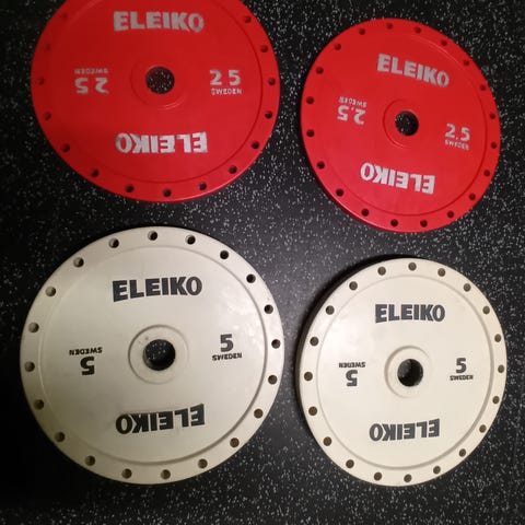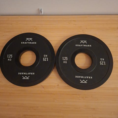 Kraftmark vektskiver med vekt på 2,5 kg hver. Røde i fargen i par.. Egnet for styrketrening og vektløfting.