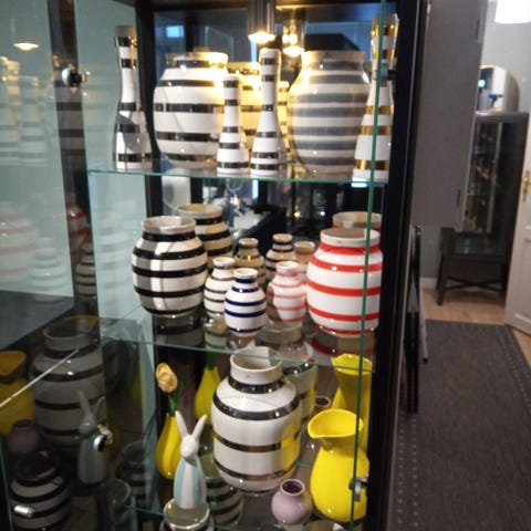 Pent vitrineskap med glasshyller, 3 skuffer, belysning.