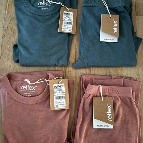Nytt. 2 Stk. Reflex Frost Trøye. Merinoull. Str. 122/128 cm. Farge : Lilac og Blå. 1 Trøye Fix Str. 122/128 Farge : Blå. Kr. 200.- pr. stk.