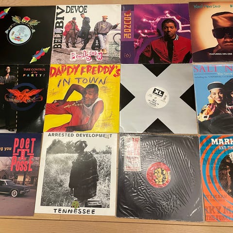 Blandet samling av CD-plater med ulike artister og musikkstiler.