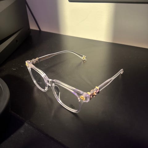 Samling av Chrome hearts briller, selges i en valgfri mengde, de er anti blue-light briller, altså de er ment til å være beskyttende mot blå lys. Disse har veldig fine inngraveringer på innsiden og utsiden av brillene og en logo på selve glasset. 499kr for hver brille