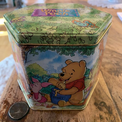 2 Stk søte bokser selges samlet for 200kr motiv av noe som ligner på Ole brumm