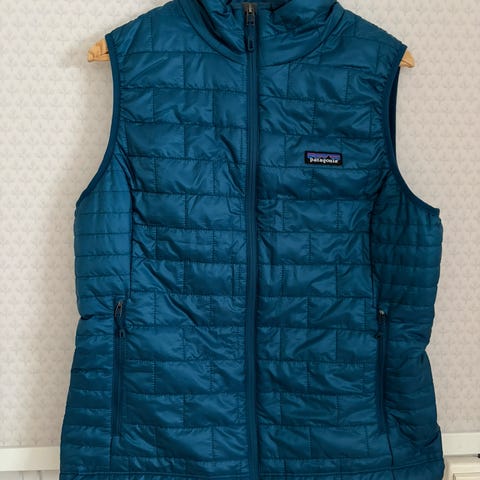 Selger en Patagonia Nano Puff vest i dame modell, størrelse S. Dette er en lett og funksjonell isolasjonsvest som gir god varme uten å bli klumpete, og passer like fint til tur, fritid og hverdagsbruk.