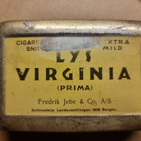 🔹Boksen er laget av metall og ble brukt til å oppbevare 50g tobakk.