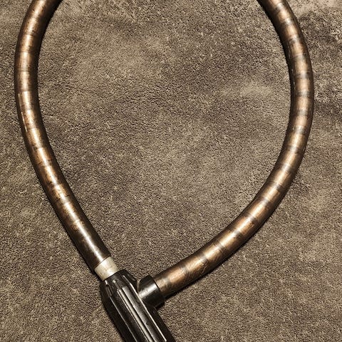 Dette er en sykkellås med kode, nærmere bestemt en kabellås eller spirallås.
