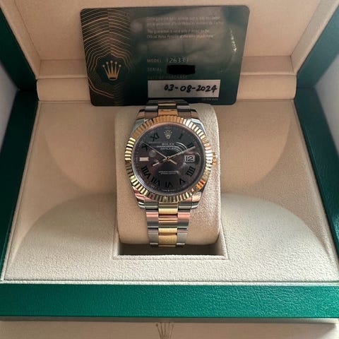 Ref nr 124273. Sparsomt brukt og fremstår i mint riktig flott stand, komplet pakke med alt + kvittering fra autorisert rolex eu forhandler 2023 følger med. Bytte kan vere aktuelt opp/ned i pris med anden realistisk priset klokke da den bare ligger og pynter i klokkeboksen uden og blive brukt og ønsker litt forandring.