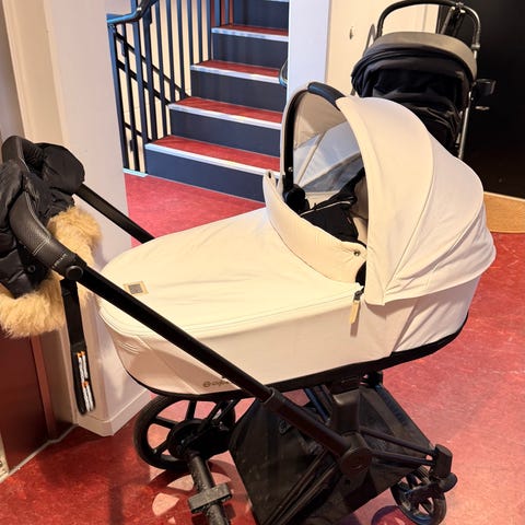 Selger vår CYBEX e-Priam barnevogn, kjøpt ny i 2022. Dette er en premiumvogn med elektrisk assistanse som gjør den ekstra behagelig å trille, særlig i bakker og ulendt terreng.