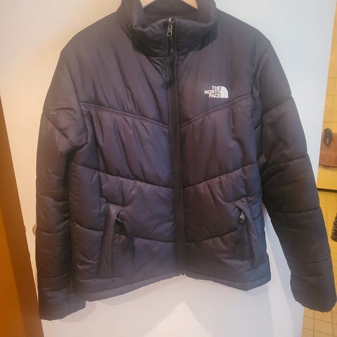 Pent brukt svart puffer som rekker til lårene. Ingen bruksmerker som jeg kan se:)