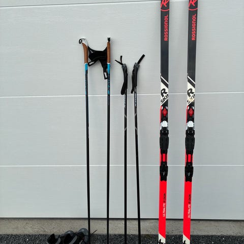 Pent brukt langrennski med feller for barn som gjør de første turene til en gøy start uten bakglatte ski. Ski er 130cm og sko er i størrelse 33. Brukt kun noen få turer.