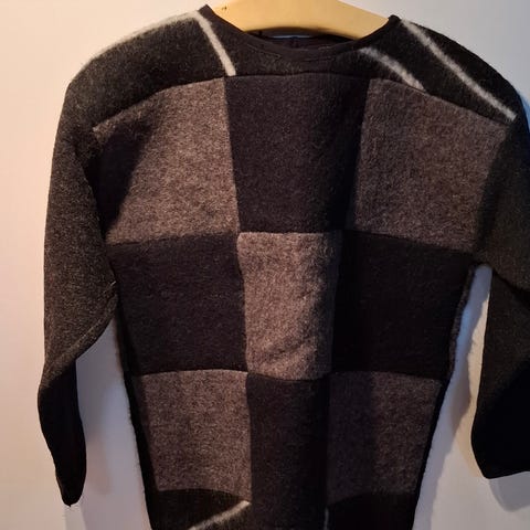 Jeg selger denne ullgenseren i svart og hvitt i veldig god stand. Størrelse Large