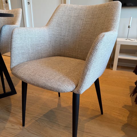 Kjøpt ny tidlig 2025. Veldig behagelige. Ble litt store for vårt bord. Kjøpt for 1499kr stk. Selger samlet for 3500.