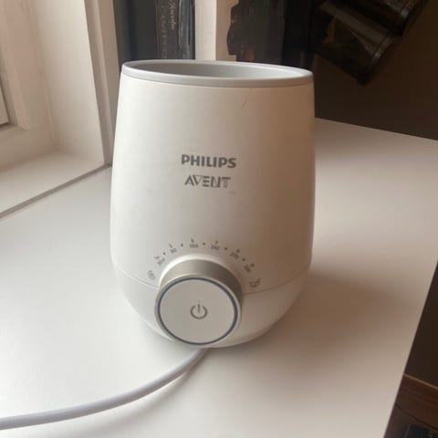 Philips Avent flaskevarmer i hvit farge. En enhet designet for å varme opp babyflasker jevnt og trygt. Pent brukt.