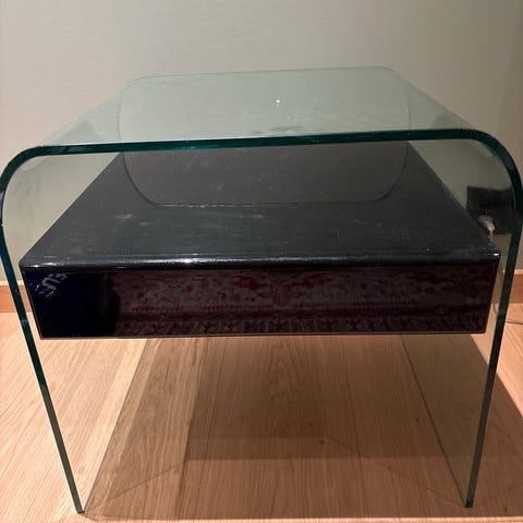 Stort og fint salongbord. Nyttig hylle under til oppbevaring. Glasset er helt og kan flyttes separat fra rammen.