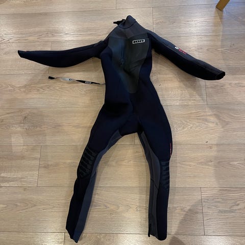 Våtdrakten har hette. Størrelse LT.