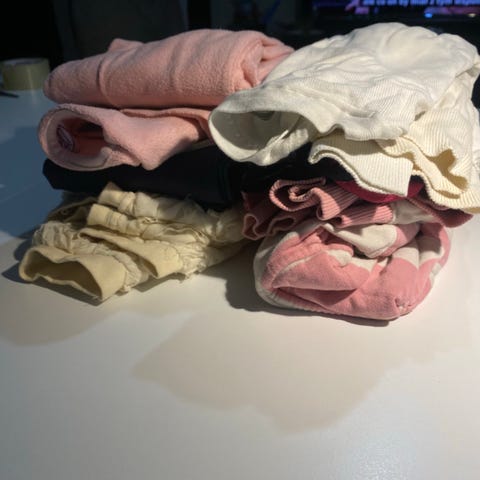 Mange fine klær uten bruksmerker og ett av plagene er helt nytt. Kjolen er tykk og virker som veldig høy kvalitet.