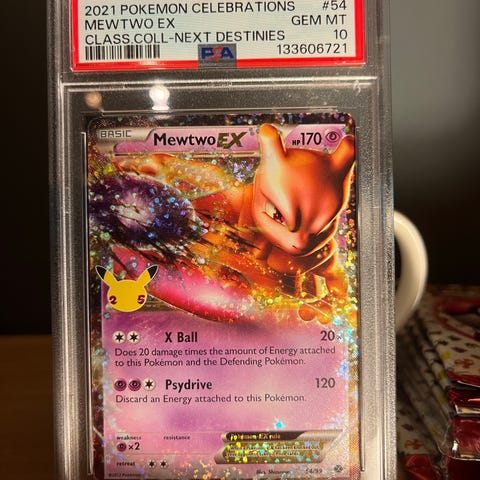 Pokémon, Mewtwo, Mewtwo EX, PSA9, graded, slab, Celebrations, Classic Collection, Next Destinies, samlekort, mint, collectible, investeringskort, holografisk, Pokémonkort, 25th anniversary, 2021 Pokémon, Pokémon Norge