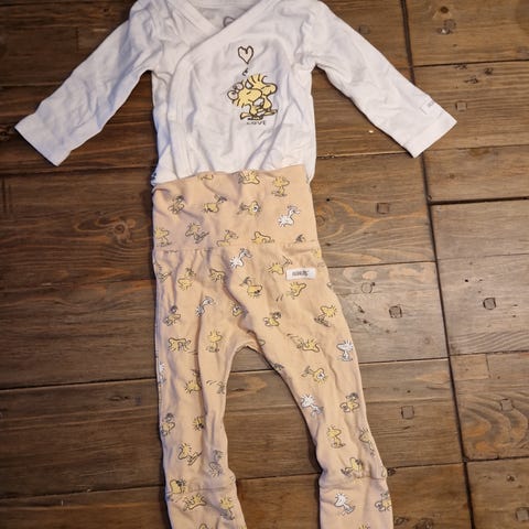 Nydelig sett fra newbie med søte små ender på. Omslagsbody og kjempemyk bukse. Brukt 1-2 ganger.