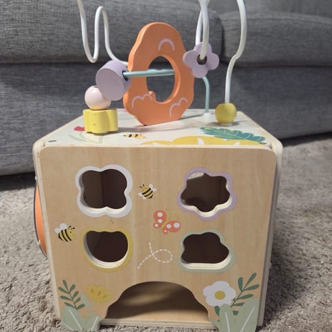 IKEA aktivitetsleke for barn med integrert xylofon, roterende klosser, speil og trekkeleke-funksjon. Leken har fargerike detaljer og er laget i tremateriale. Designet for å stimulere motoriske ferdigheter og sanseopplevelser.