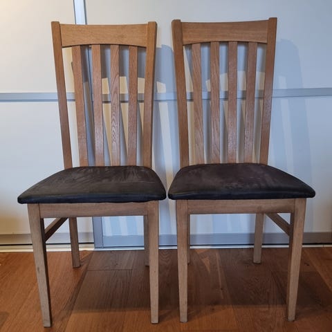 Solid bord, eik, fra 70-tallet, lemmene utgjør 45 x 2 cm. Så total lengde er 2,3 meter. Bør hentes, kan ev.levere langs strekningen Tbg - Asker, ev. Bærum for 200,-! 4 stoler som hører til, kan ev.selges hver for seg. Spisebordet til 800,-, stolene 250,- pr. stk, samlet 1200,- Noen skygger på bordet, kan fikses for 300,-! Høyde på seter; 48 cm, stolhøyde 88 cm.