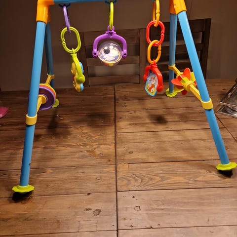Leker følger med som avbildet. En leke mangler fra da den ble kjøpt, og en leke mangler musikk. Ellers ser alt veldig fint ut.