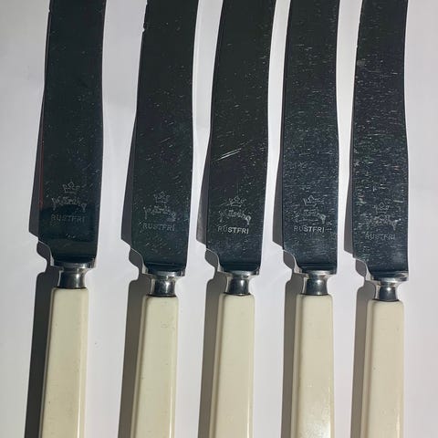 Pent brukte fruktkniver fra Skaugum.