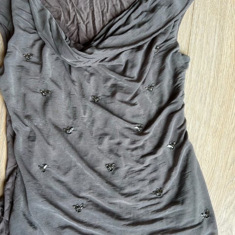 Svart topp str XS (passer S også). Har revnet litt (se bilde) men ikke så synlig.