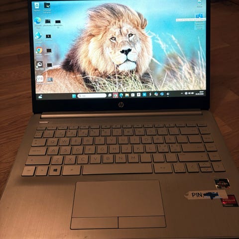 HP bærbar PC i sølvfarge. Produktet har et tastatur, skjerm og bunnpanel i metallisk sølv. Designet for generell bruk som bærbar datamaskin.