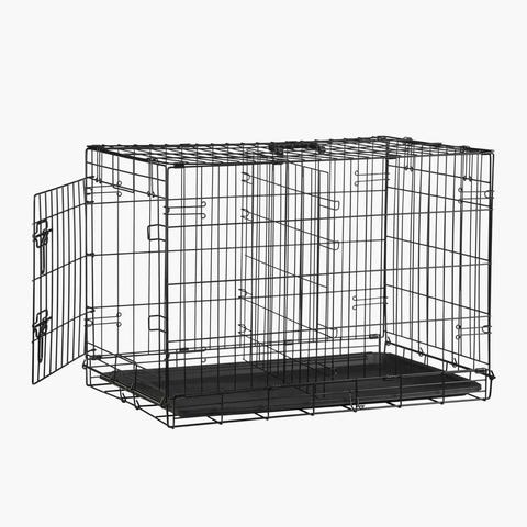 Sammenleggbar metallbur for kjæledyr med svart farge. Buret er laget av metall og kan foldes sammen for enkel oppbevaring og transport. Egnet for bruk som transportbur eller midlertidig oppholdsplass for kjæledyr.