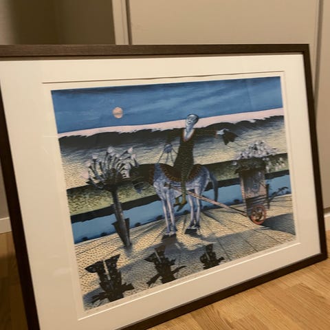 Jan Baker litografi selges i forbindelse med flytting. Kult metallpreg på bildet som gir gjenskinn i lys (se bilder). Bildet er nummerert og signert av kunstner. Innrammet med passepartout og syrefritt bakark. Ramme er inkludert.