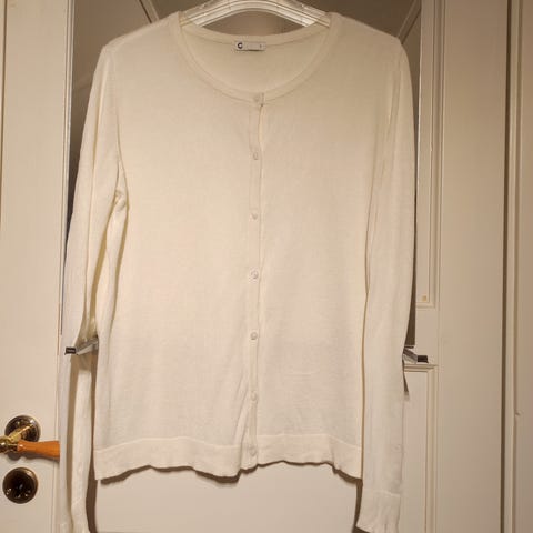 B.young Cardigan i størrelse L for dame, laget av 60% bomull og 40% viskose. Cardiganen har en hvit farge og knappelukking foran.