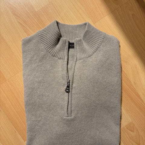 Selger en lite brukt half zip i modellen "Marlon" fra Oscar Jacobson. Genseren er i str. L, men er liten i størrelsen og passer som M.