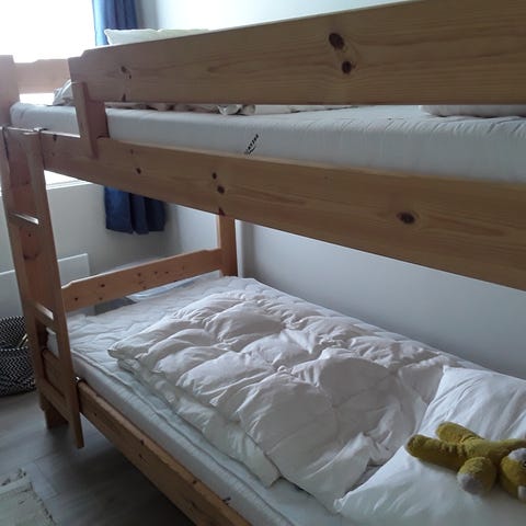 Solid, kun brukt som gjesteseng, madrasser kan medfølge.