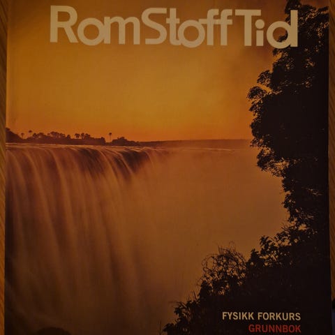 Rom Stoff Tid Fysikk lærebok for fysikk forkurs. Boken dekker grunnleggende konsepter og emner innen fysikk, egnet for studenter som forbereder seg til videre studier innen naturvitenskap og teknologi.