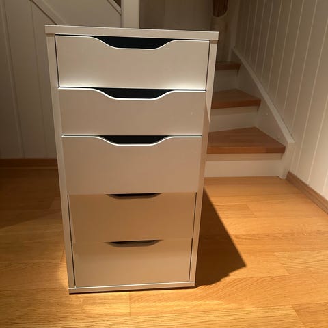 Pent brukt Alex kommode fra IKEA med 9 skuffer selges til 1500 kr. Nissedal speil fra IKEA 65 x 65 selges til 200 kr. Hentes på Heimdal.
