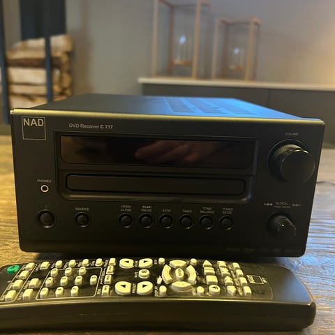 Selger en Denon AVC-1800 surroundforsterker fra Denons solide 90-tallsperiode. Dette er en tung og velbygget AV-forsterker med Dolby Pro Logic, DSP-moduser og svært god stereolyd sammenlignet med mange nyere budsjett-receivere. Mangler fjernkontroll.
