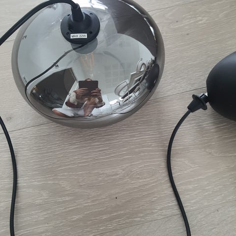 Elegant pendellampe med klart/røykfarget glass og detaljer i messing. Gir et moderne og varmt uttrykk – passer godt over spisebord, kjøkkenøy eller i stue. Diameter ca. 28 cm, kabel ca. 80 cm lang.