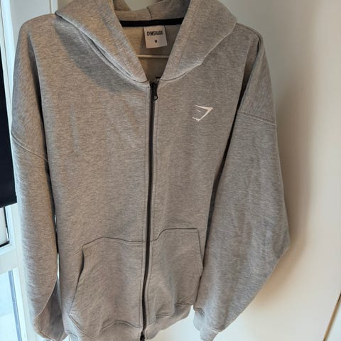 Selger en gymsahark zip hettegenser fordi den bare ligger i skapet. Lite brukt, er strl L og passer godt til meg på 190cm høy