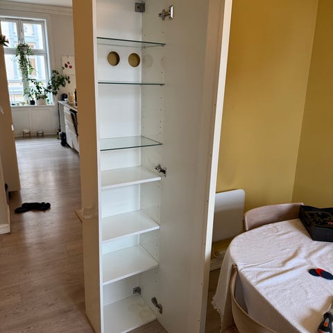 Mangler 3 hylleplater, kan skjæres til om du er handy.