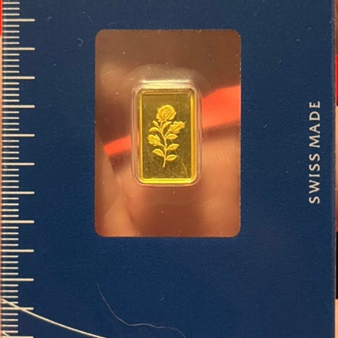 Valcambi Suisse gullbarre med vekt på 2.5 gram og renhet på 999,9‰. Gullbaren er innkapslet for beskyttelse og bevaring av kvalitet.