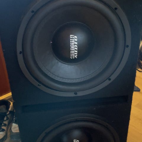 Selger 2 12 tommere fra G.A.S i en portet basskasse, begge subbene er 4 ohm og 250w rms hver.