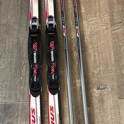 Selger et par Madshus juniorski. Det er minimalt med riper, men det er litt smøring under skia. De har blitt renset etter hver sesong, men ikke etter siste gang de ble brukt. Det er ca 160cm lange.