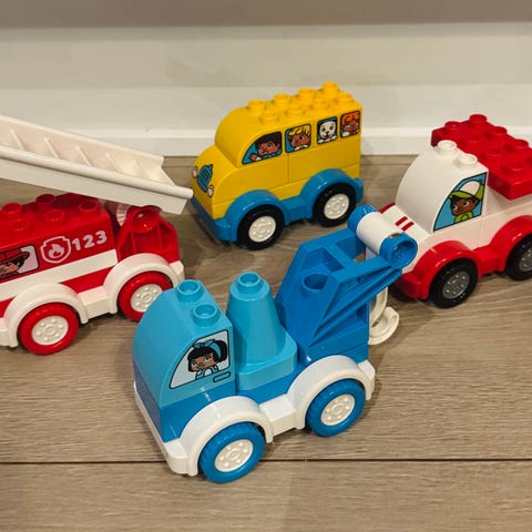 Selger et komplett sett av Duplo 4977 Brannbil. Inkluderer brannbil, to figurer, brannøks, brannslange og flamme. Lys og lyd på sirenen fungerer ikke. Det er mulig den vil fungere dersom man bytter batteri.