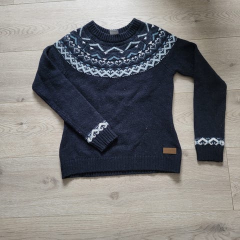Fransa genser i størrelse M for kvinner, laget av 97% polyester og 3% elastan. Genseren har en rosa farge med et mønster og lange ermer. Materialet gir en kombinasjon av komfort og elastisitet.